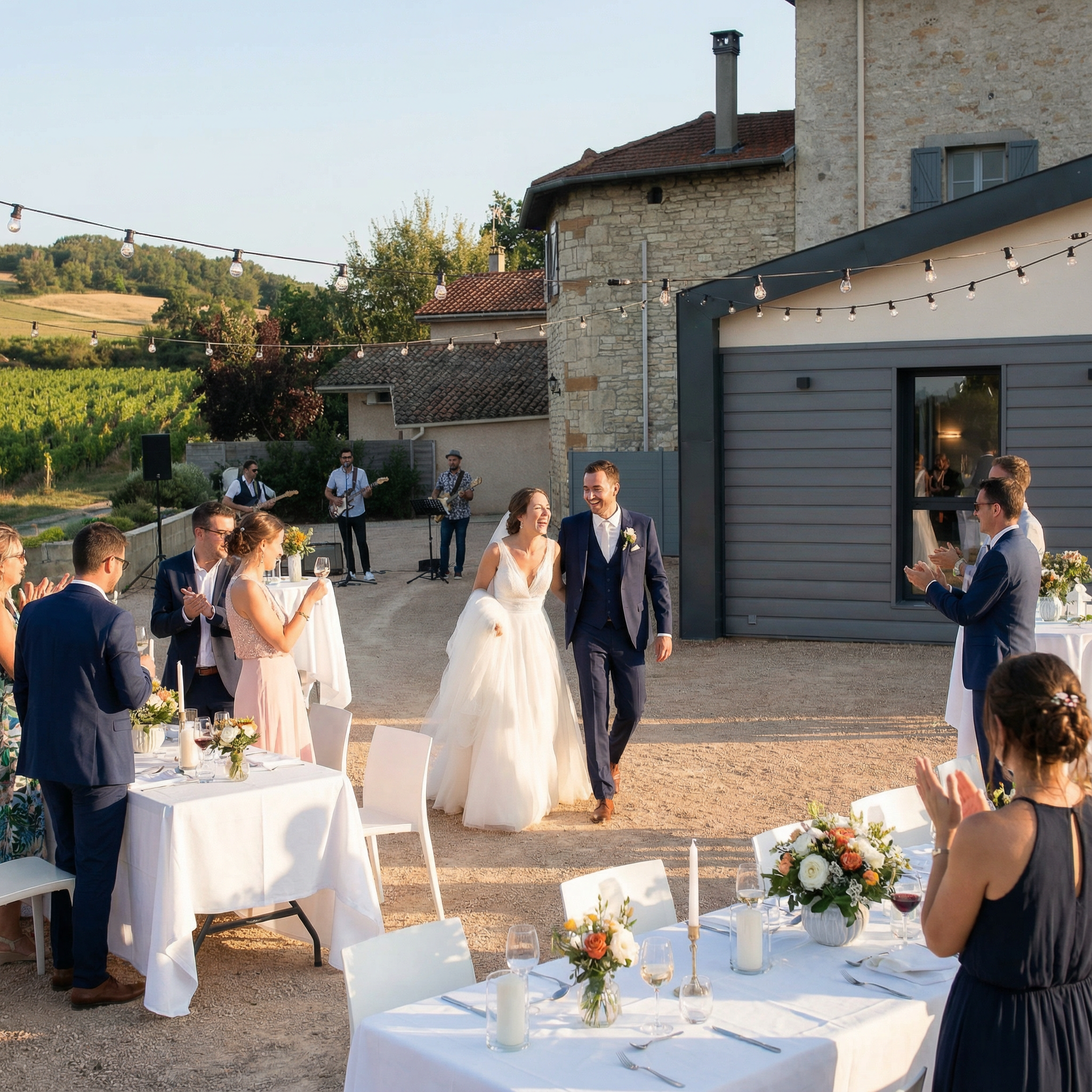 Le Domaine Méryt est un lieu de réception d'exception situé à Saint-Jean-des-Vignes, à seulement 20 minutes de Lyon. Niché au cœur de la nature, il offre un cadre panoramique idéal pour vos mariages, séminaires et événements privés ou professionnels. Le domaine dispose d'une salle lumineuse de 165 m² pouvant accueillir jusqu'à 120 convives assis (140 en cocktail), prolongée par une vaste terrasse de 300 m². Entièrement équipé, accessible PMR et doté d'un parking gratuit, le Domaine Méryt allie confort moderne et charme bucolique pour des événements inoubliables.